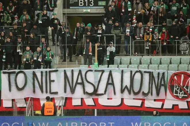 "Это не наша война". Ультрас "Шленска" вывесили провокационный баннер на тему российской агрессии в Украине