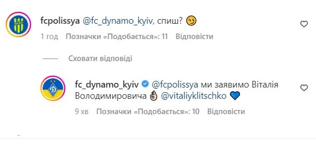 Полесье и Динамо обменялись любезностями в комментариях под сообщением в соцсетях.