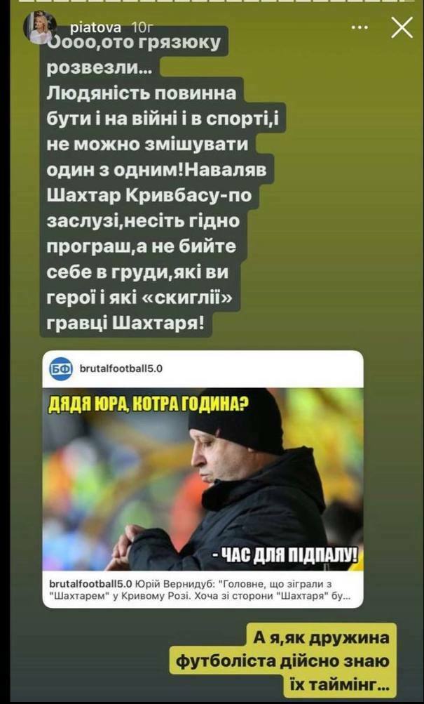Жена Пятова – Вернидубу: "Навалял "Шахтер" "Кривбассу" по заслуге"