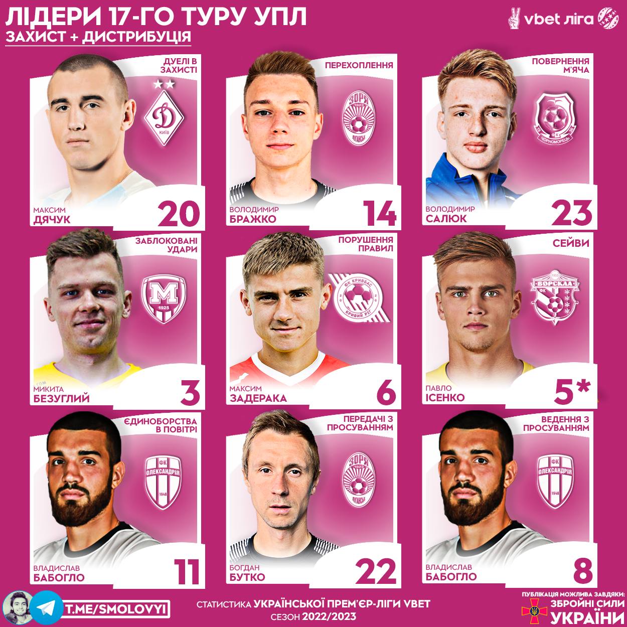 Лідери 17-го туру #УПЛ за діями в захисті та дистрибуції