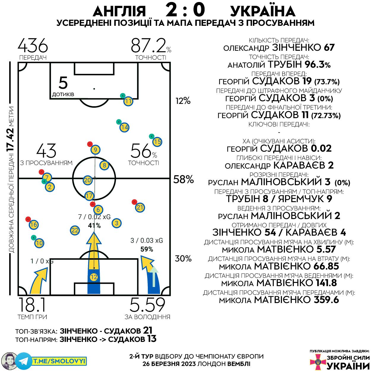 Лише 43 з 436 передач збірної України проти збірної Англії були з просуваннями, тобто такими що суттєво наближали м’яч до воріт суперника...