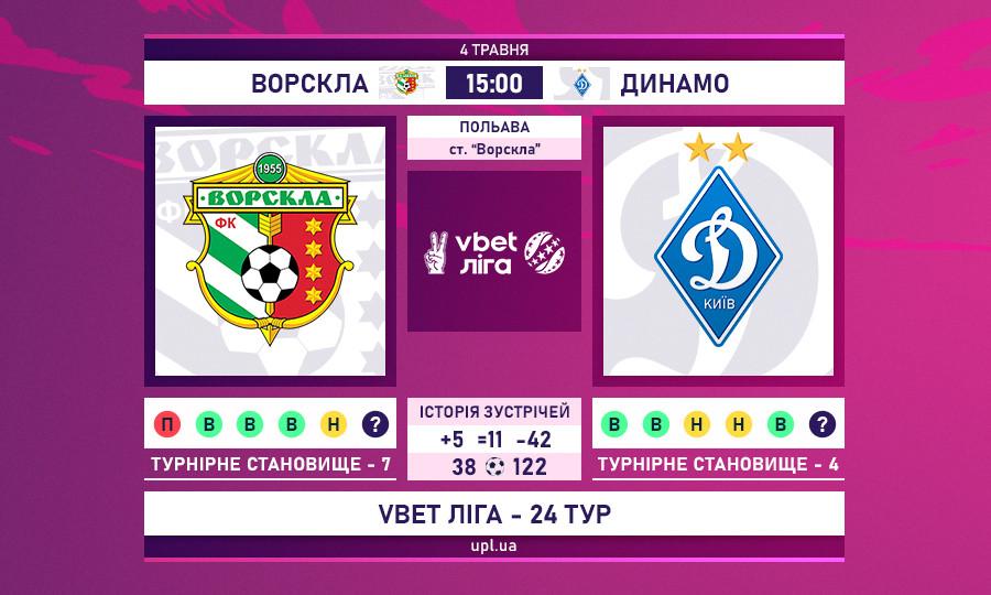 Матч 24-го тура УПЛ "Ворскла" – "Динамо": статистическое превью