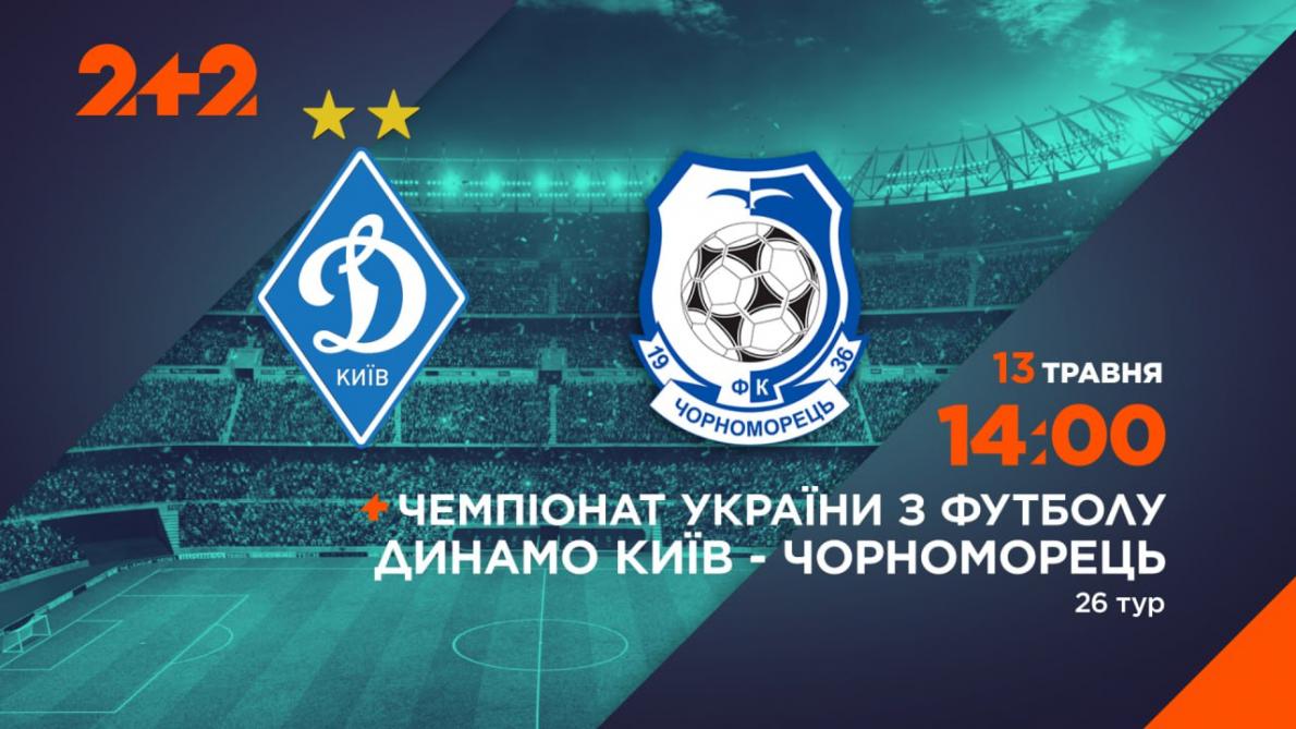 В эту субботу, 13 мая, телеканал 2+2 покажет поединок 26-го тура Премьер-лиги между киевским «Динамо» и одесским «Черноморцем». Стартовый свисток раздастся в 14:00.