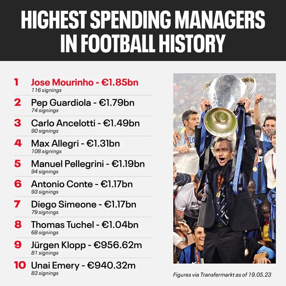 Топ-10 тренеров в истории футбола, больше всего потративших средств на трансферы