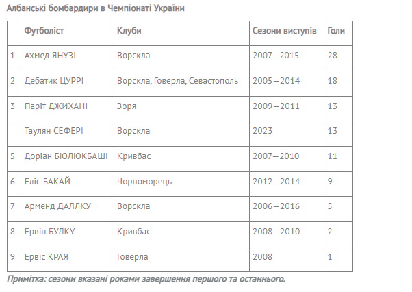 В 30-м туре в победном матче против «Шахтера» (2:1), который вывел «Ворсклу» в Лигу Конференций, автором первого забитого мяча полтавчан стал Таулян Сефери. И этот его гол оказался 100 для албанских легионеров в Чемпионате Украины.