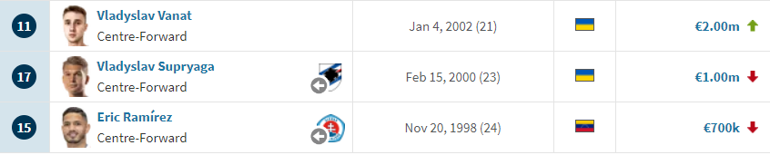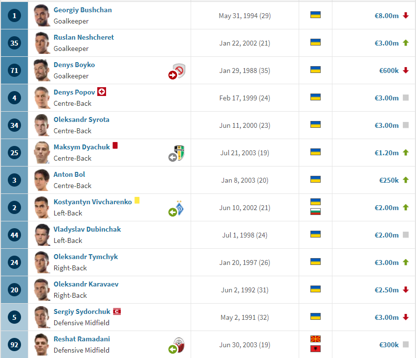 Стоит отметить, что стоимость сразу 11-ти футболистов "Динамо" уменьшилась. В частности, дешевле стали Георгий Бущан, Денис Бойко (покинет команду после 30 июня), Александр Караваев, Сергей Сидорчук, Николай Шапаренко, Виталий Буяльский, Денис Гармаш, Богдан Леднев, Кахим Пэррис, Владислав Супряга и Эрик Рамирес.