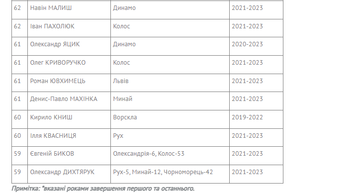 Среди игроков, задействованных в первой части текущего юношеского Чемпионата, выделим также Максима Мудрого («Львов»), Кристиана Свистуна («Днепр-1»), Дмитрия Иродовского («Колос») и Руслана Непейпиева ( «Рух»), вошедших в историческую первую десятку игроков с наибольшим количеством игр в Чемпионатах Украины U-19.