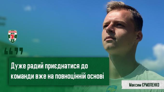 Киевская «Оболонь» сообщила о том, что заключен полноценный контракт с форвардом Максимом Ермоленко, который в предыдущем сезоне-2022/2023 защищал цвета команды на правах аренды у одесского «Черноморца».