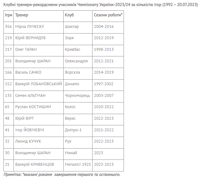 Луческу – тренер-рекордсмен участников чемпионата Украины-2023/24 по количеству игр