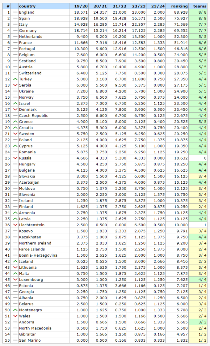 Набирает ход сезон еврокубков, и настало время изучить таблицу коэффициентов УЕФА.