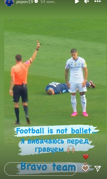 Защитник "Динамо" Денис Попов в своем Instagram прокомментировал удаление в матче с "Минаем".