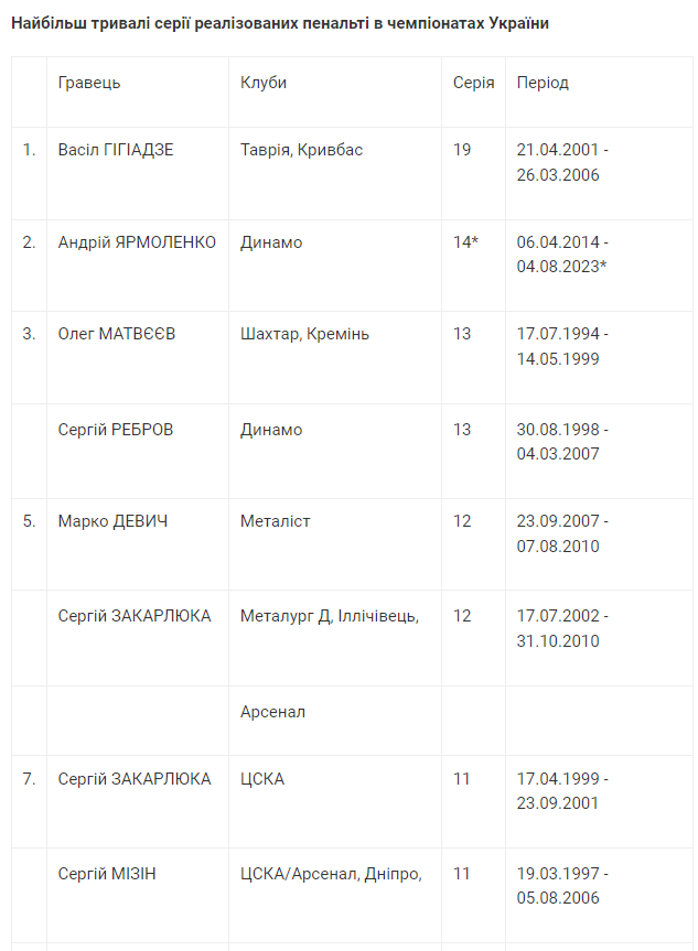 Ярмоленко реализовал 14 пенальти в чемпионате Украины подряд