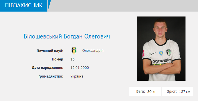 "Александрия" заявила на чемпионат Украины полузащитника Богдана Билошевского.