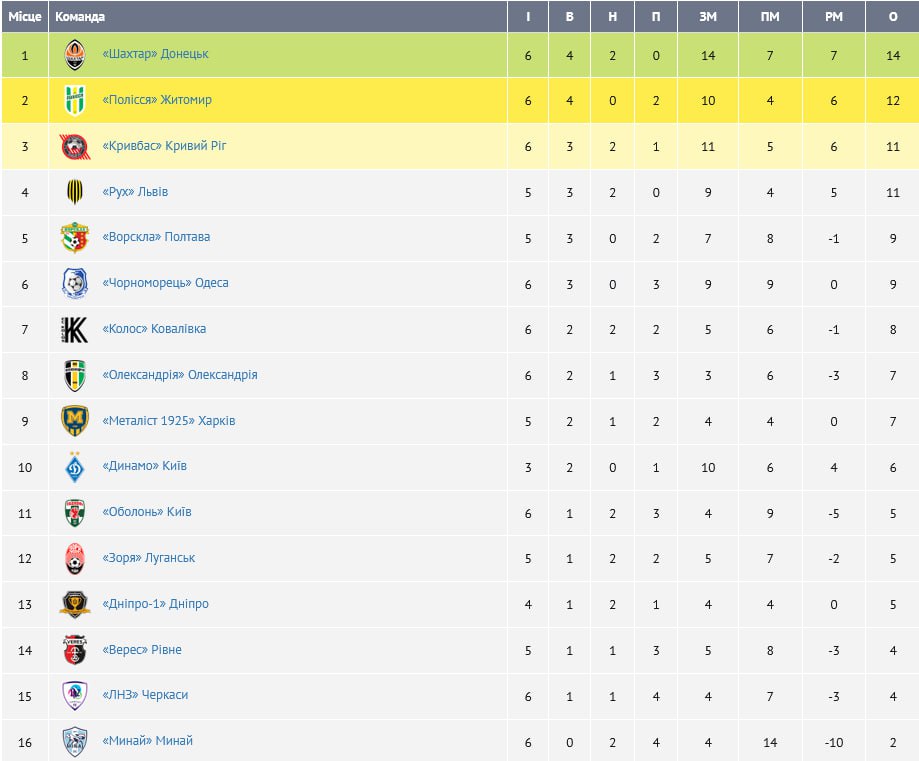 Турнирная таблица Премьер-лиги после 6-ти туров