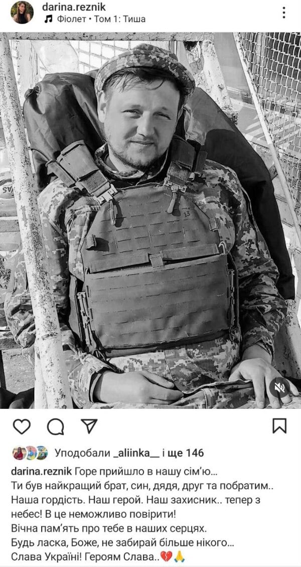 Горе пришло в нашу семью. Ты был лучший брат, сын, дядя, друг и побратим. Наша гордость. Наш герой. Наш защитник. Теперь с небес. В это невозможно поверить! Вечная память о тебе в наших сердцах. Пожалуйста, Боже, не забирай больше никого... Слава Украине! Героям слава, - написала Дарья Ризнык в своем Іnstagram.