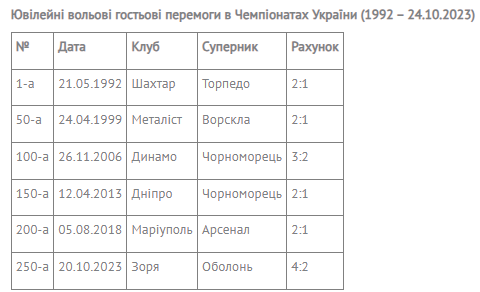 Больше всего среди 37 клубов волевых побед на чужих полях в активе футболистов «Шахтера» – 46, «Динамо» – 45, «Днепра» – 18 и «Черноморца» – 16.