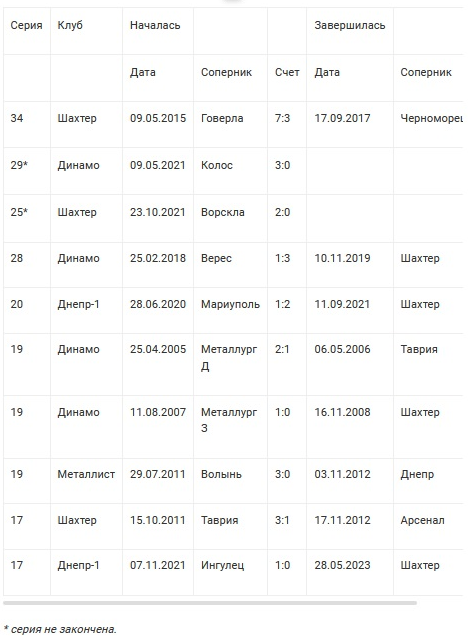 Самые продолжительные гостевые голевые серии в чемпионатах Украины
