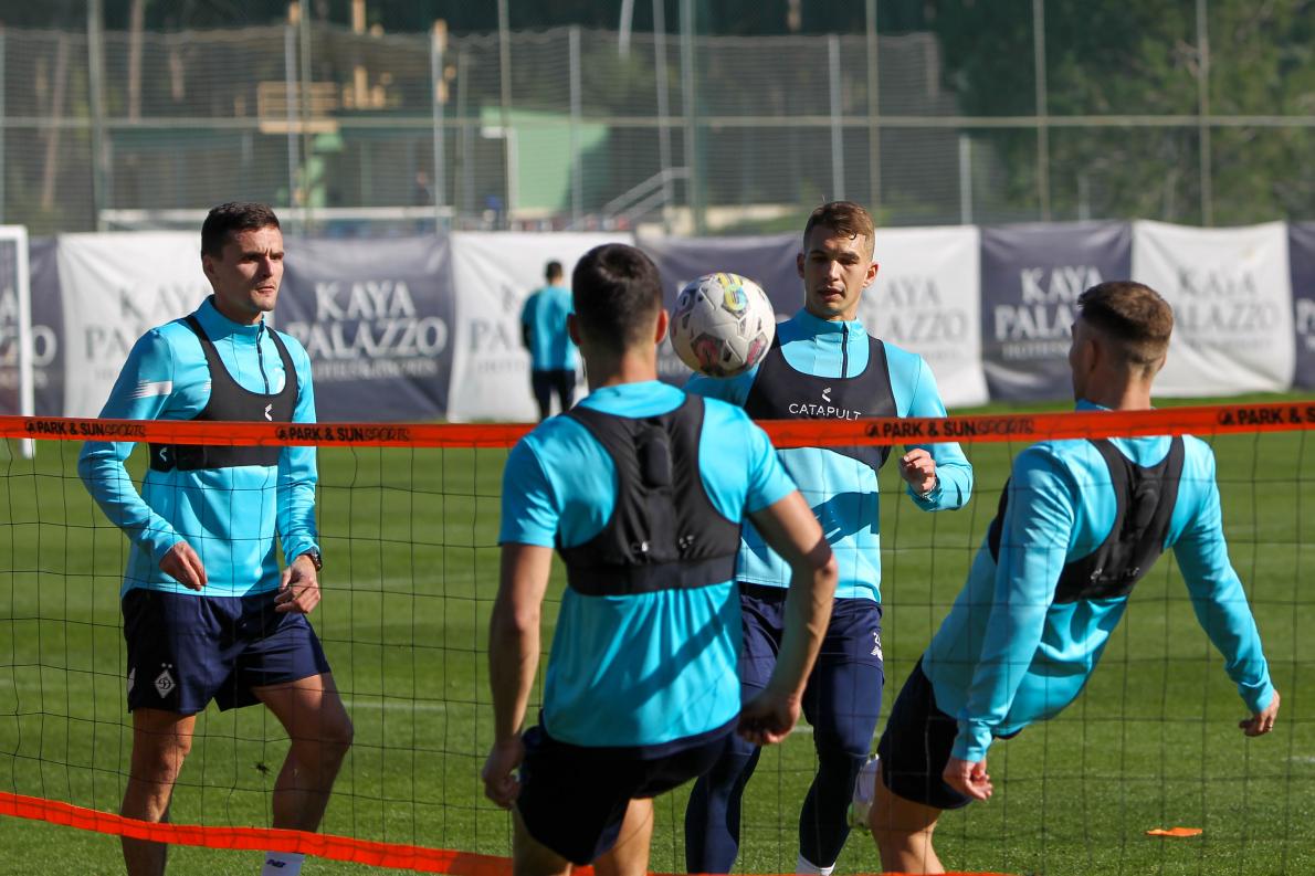В отличие от утреннего, вечерняя тренировка была насыщена игровыми упражнениями. Динамовцы отрабатывали передачи, удержание мяча и прессинг, работали отдельно над действиями в атаке и обороне. А в завершение третьего тренировочного дня, поделены на две команды, сыграли почти на все поле.