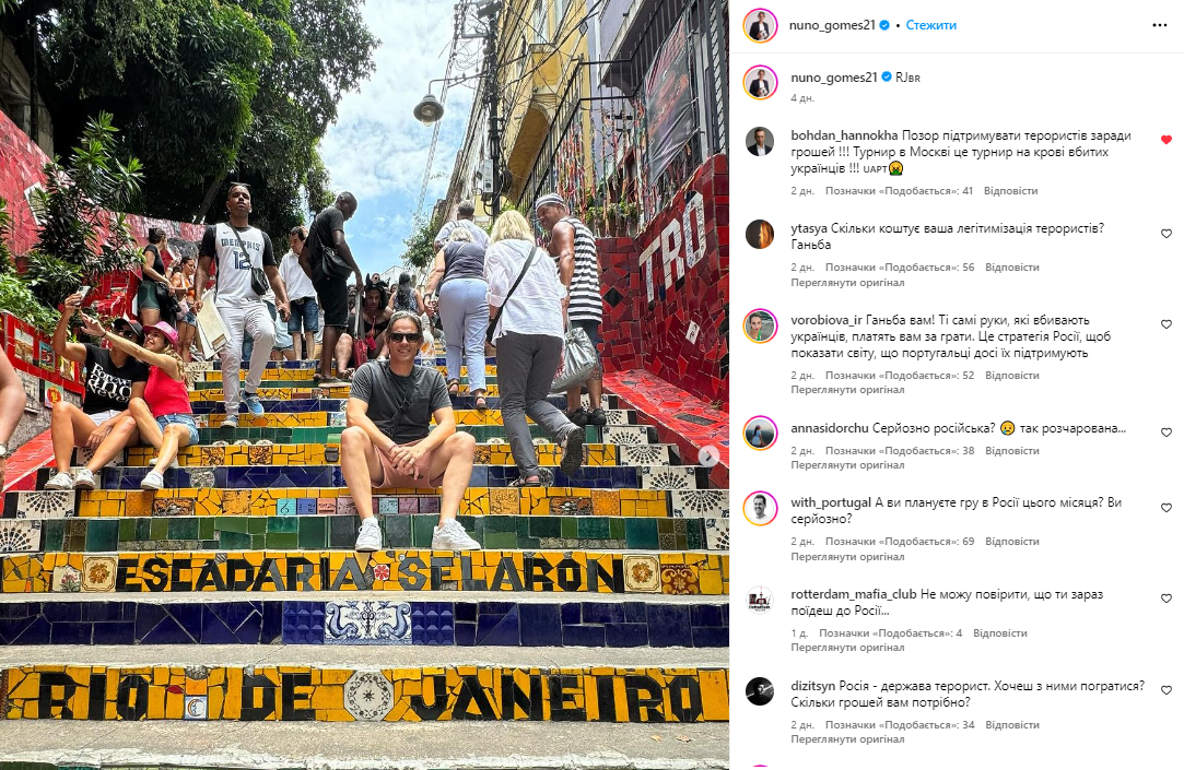 Бывшего футболиста сборной Португалии Нуну Гомеша пристыдили в комментариях в его Instagram за согласие принять участие в турнире в Москве.