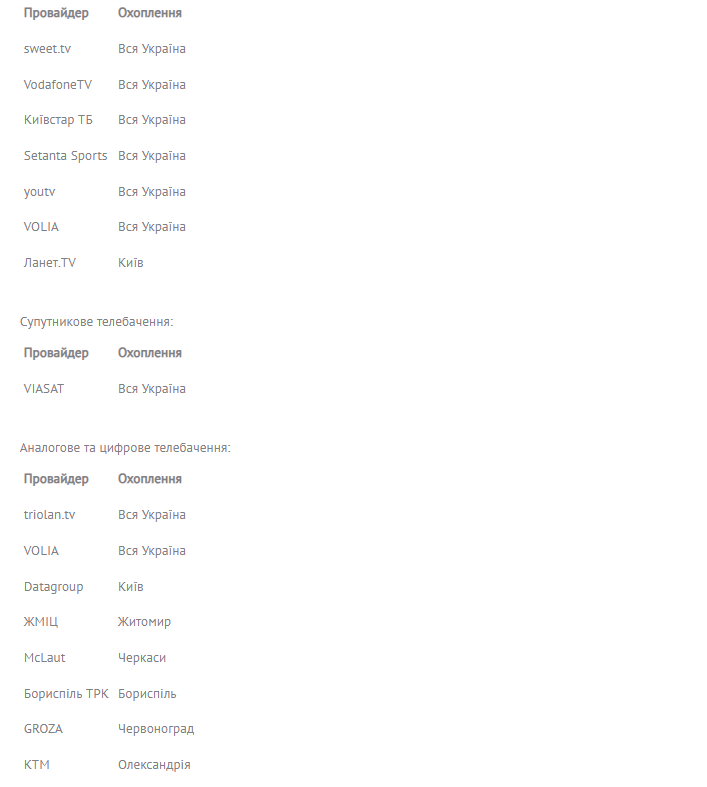 Данный список не является финальным, со многими провайдерами еще ведутся переговоры. Мы будем оперативно информировать зрителей о достигнутых договоренностях.