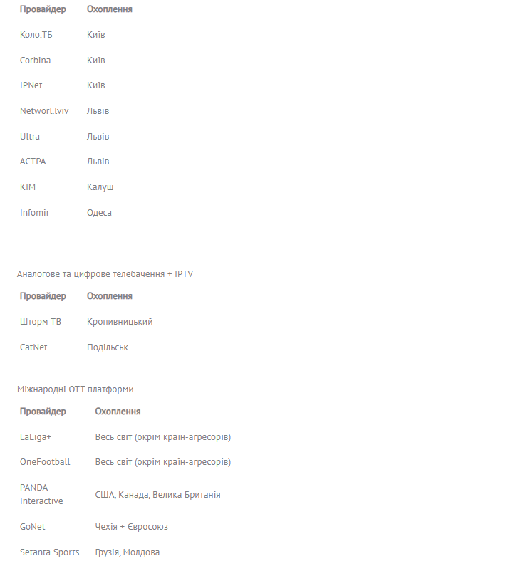 Украинская Премьер-Лига обнародовала первоначальный список провайдеров, которые будут транслировать UPL.TV