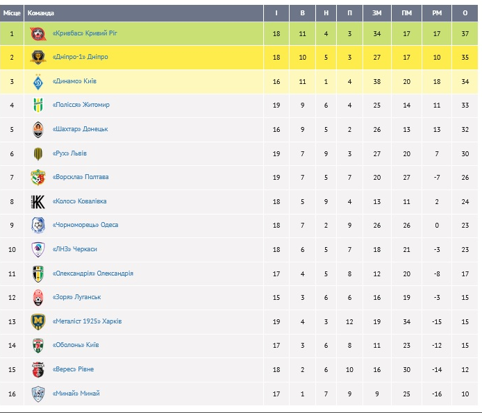 На данный момент киевляне провели 16 матчей и имеют в своем активе 34 очка.