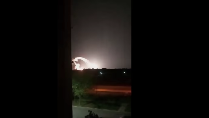 Как видно на видео, после взрывов на военном аэродроме занялся масштабный пожар.