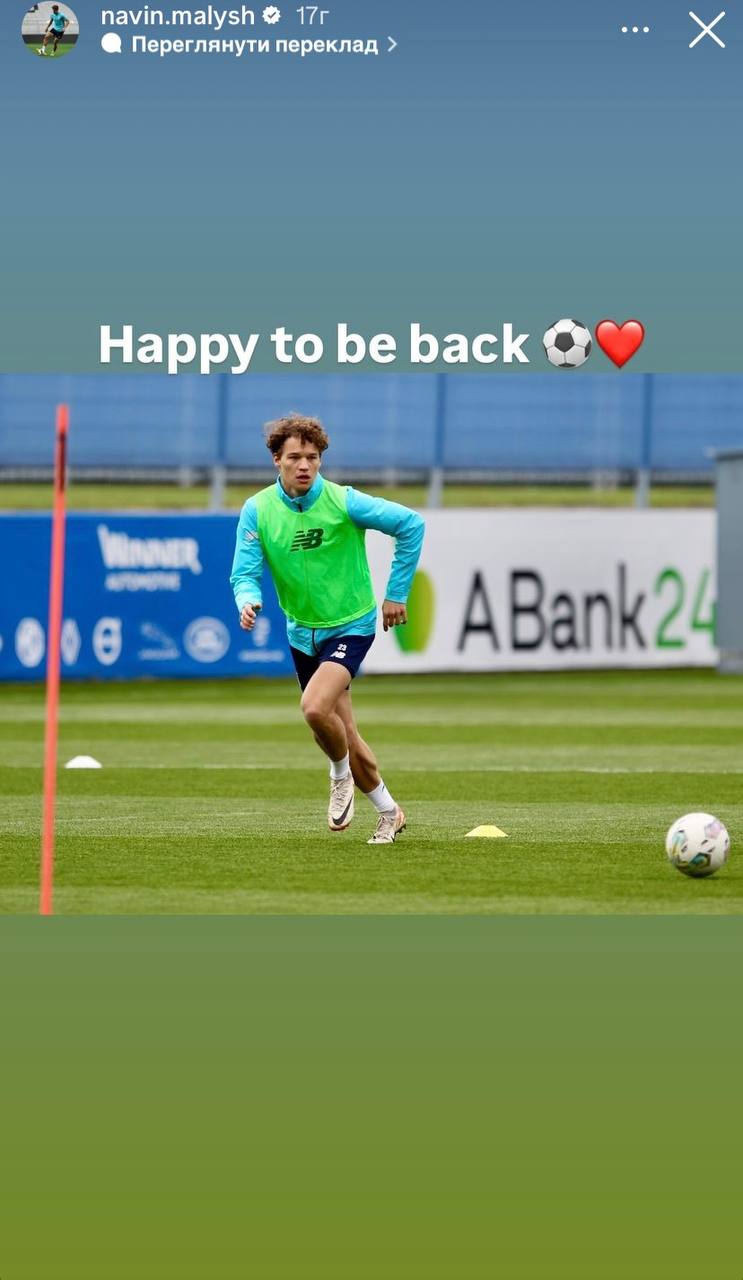 Защитник "Динамо" Навин Малыш в своем Instagram отреагировал на свое возвращение к тренировкам в общей группе.