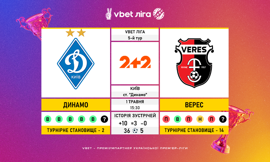 Серія домашніх великих перемог Динамо над Вересом триває в УПЛ 3 гри.