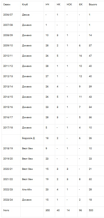 500 матчів у клубній кар'єрі Андрія Ярмоленка