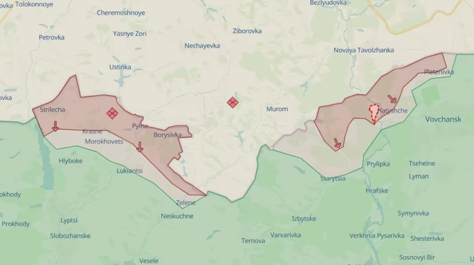 Детали: По данным платформы, враг продвинулся в Красногоровке, возле Владимировки и оккупировал Стрелечье, Пыльное, Красное, Борисовку, Огирцево и Плетеневку.