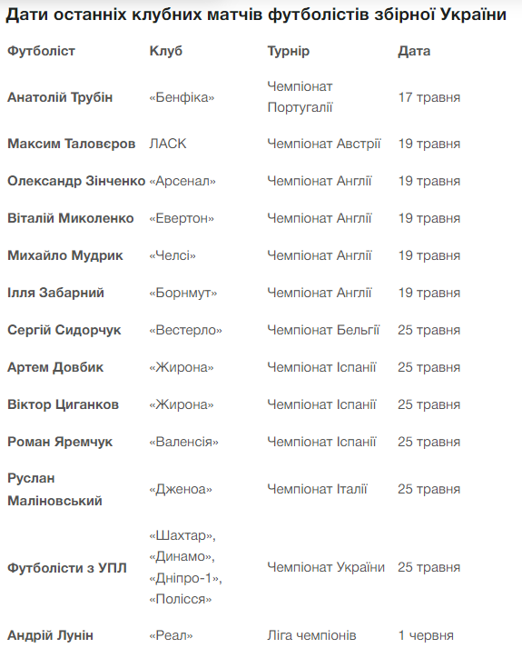 Когда футболисты сборной Украины заканчивают свои клубные дела в сезоне-2023/2024: график