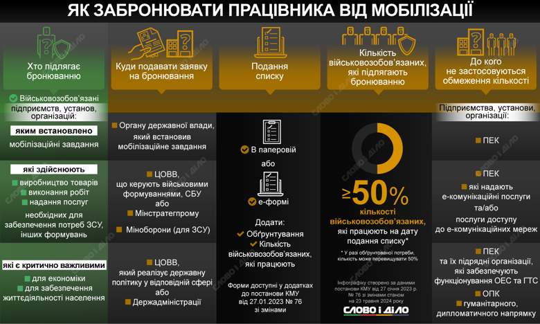 На інфографіці – як працює бронювання від мобілізації працівників критично важливих підприємств.