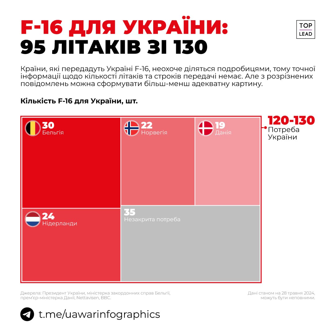 Сколько партнеры дадут нам F-16 в инфографике: 95 самолетов из 120-130 нужных