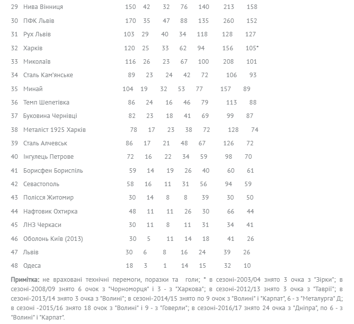 Историческая таблица всех чемпионатов Украины претерпела изменения.