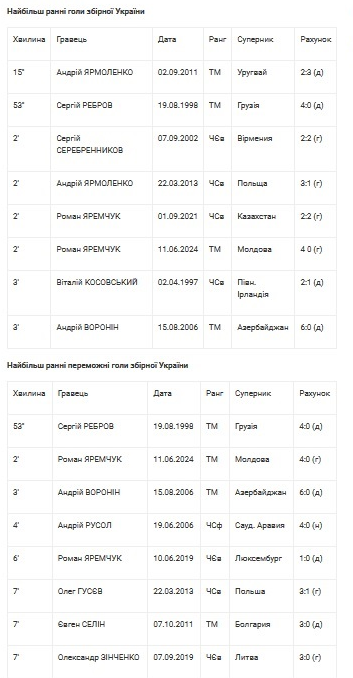 Роман Яремчук, який відкрив рахунок у матчі з Молдовою (4:0) на 2-й хвилині зустрічі, став автором одного з найбільш ранніх голів збірної України. Власне кажучи, швидше вражали ворота суперників лише Сергій Ребров та Андрій Ярмоленко.