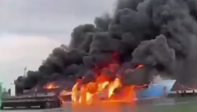 Железнодорожный паром с топливом, который загорелся в российском порту "Кавказ" якобы из-за удара ВСУ – затонул.