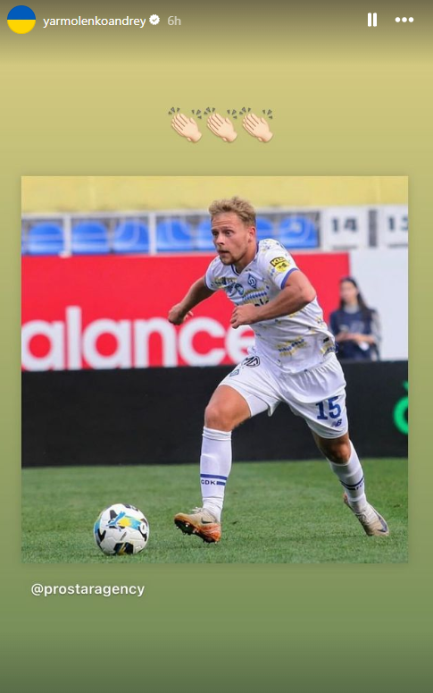 Вингер "Динамо" Андрей Ярмоленко в своем Instagram отреагировал на дебют полузащитника Валентина Рубчинского за киевскую команду.