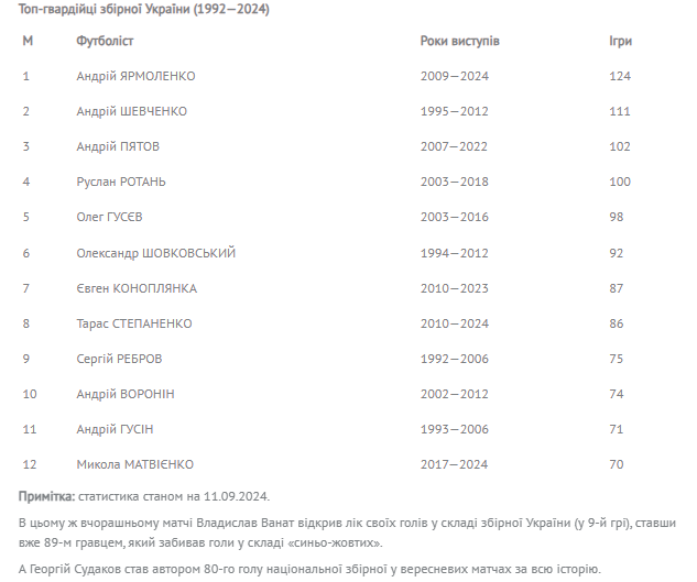 Ванат стал 89-м игроком, забивавшим в составе сборной Украины