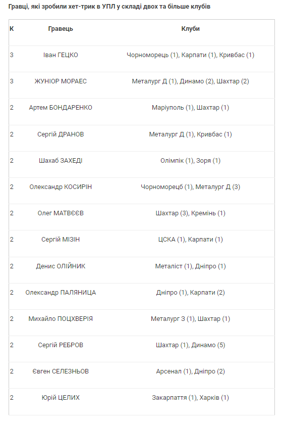 Больше «трюков со шляпой» исполнили в УПЛ только бомбардиры «Динамо» – 34. Между тем Бондаренко стал 20-м игроком горняков, забивавшим три мяча за матч, а также 14-м футболистом, сделавшим хет-трик в составе двух клубов.