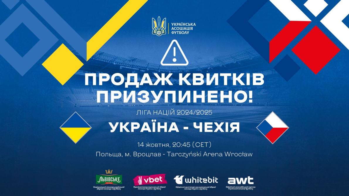 Из-за стихийного бедствия (наводнения), от которого страдает большая часть Польши, продажа билетов на матч Лиги наций-2024/2025 Украина — Чехия, который должен состояться 14 октября во Вроцлаве на стадионе «Тарчинский Арена Вроцлав», приостановлена до стабилизации ситуации.