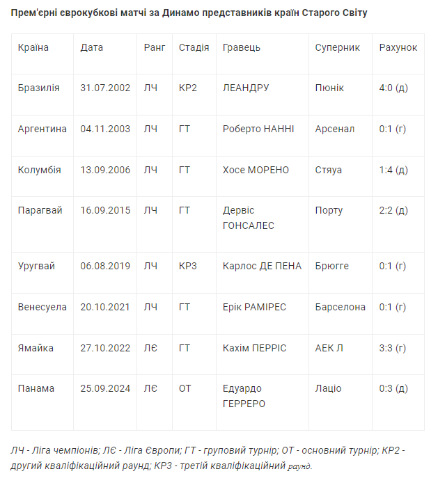 В матче с «Лацио» (0:3) состоялся еврокубковый дебют за «Динамо» 24-летнего нападающего из Панамы Эдуардо Герреро. Он стал игроком 30-й страны дальнего зарубежья, чьи представители выступали за киевлян на международной арене. В эту тридцатку вошли 17 государств из Европы, 6 – из Южной Америки, 5 – из Африки и 2 – из Северной Америки.