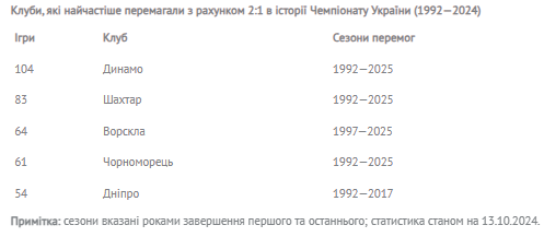 "Динамо" - клуб, чаще всего побеждавший в истории чемпионата Украины со счетами 1:0 и 2:1
