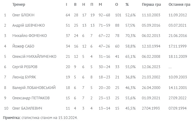 Топ-10 гвардійців серед тренерів збірної України (1992—2024)