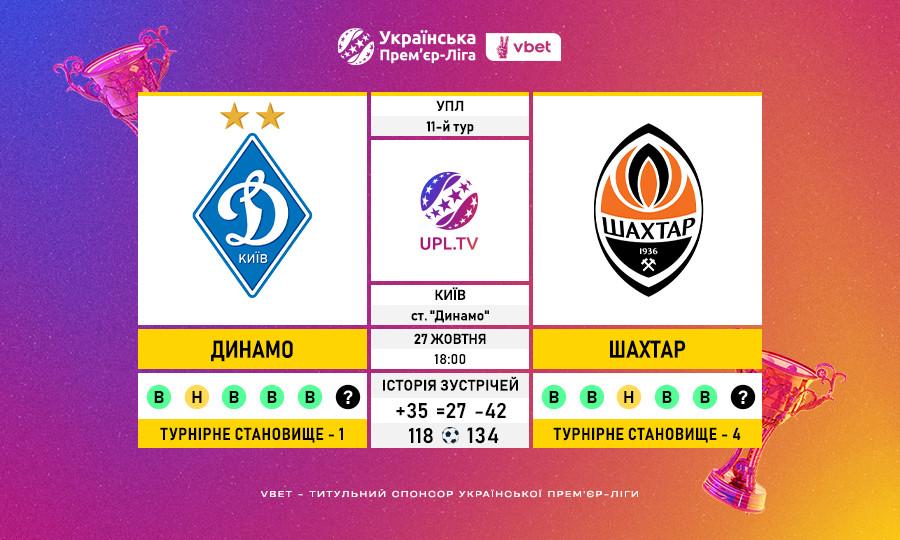 Матч 11-го туру VBET Української Прем’єр-Ліги «Динамо» — «Шахтар»: статистичне прев’ю.