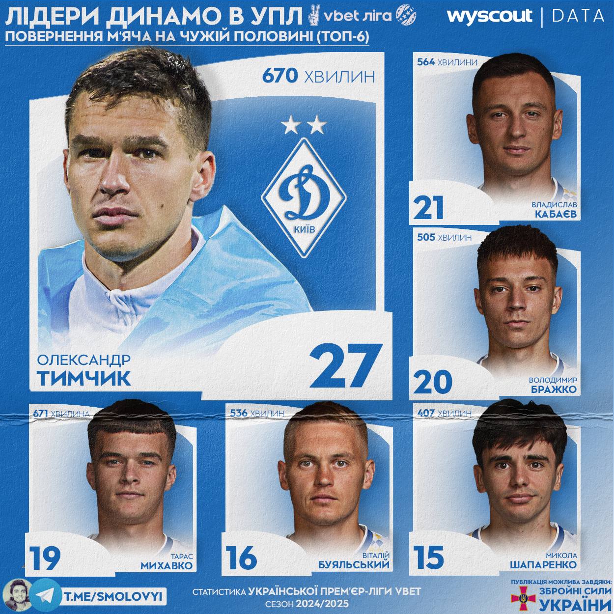 Блогер Михайло Смоловий у своєму Телеграм-каналі розповідає про лідерів "Динамо" щодо повернення м'яча на чужій половині поля.