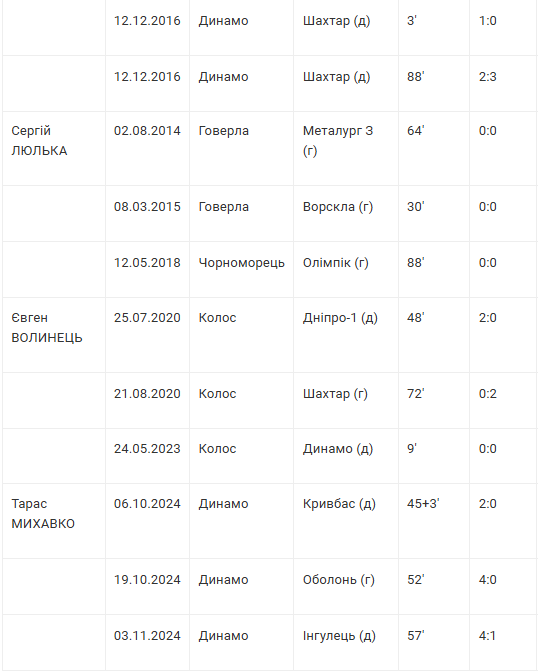 В матче с «Ингульцом» (5:2) 19-летний защитник «Динамо» Тарас Михавко третий раз поразил свои ворота в чемпионатах Украины, став 11-м игроком, достигшим этого рубежа. Свой первый «самострел» Михавко совершил 6 октября в домашнем поединке динамовцев с «Кривбассом» (2:1). А через 13 дней Тарас «отличился» уже в гостях во встрече с «Оболонью» (5:1).