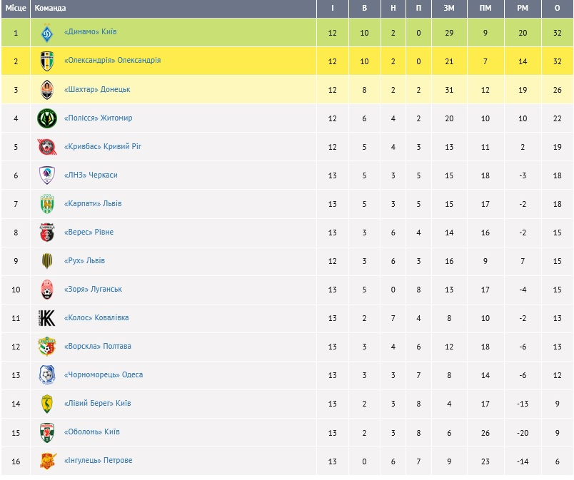 "Динамо" вернулось на 1-е место. Как выглядит турнирная таблица Премьер-лиги после 13-го тура