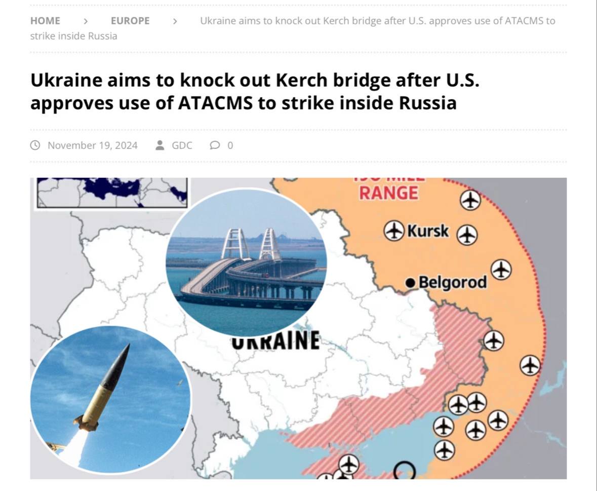 Украина планирует уничтожить Крымский мост после того, как Байден разрешил бить ракетами ATACMS, пишет Global Defence Corp.