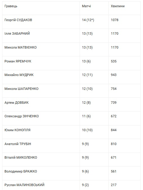 До речі, не менше половини зустрічей провели у 2024-му 18 із 33-х футболістів, які цього року виступали за національну дружину.